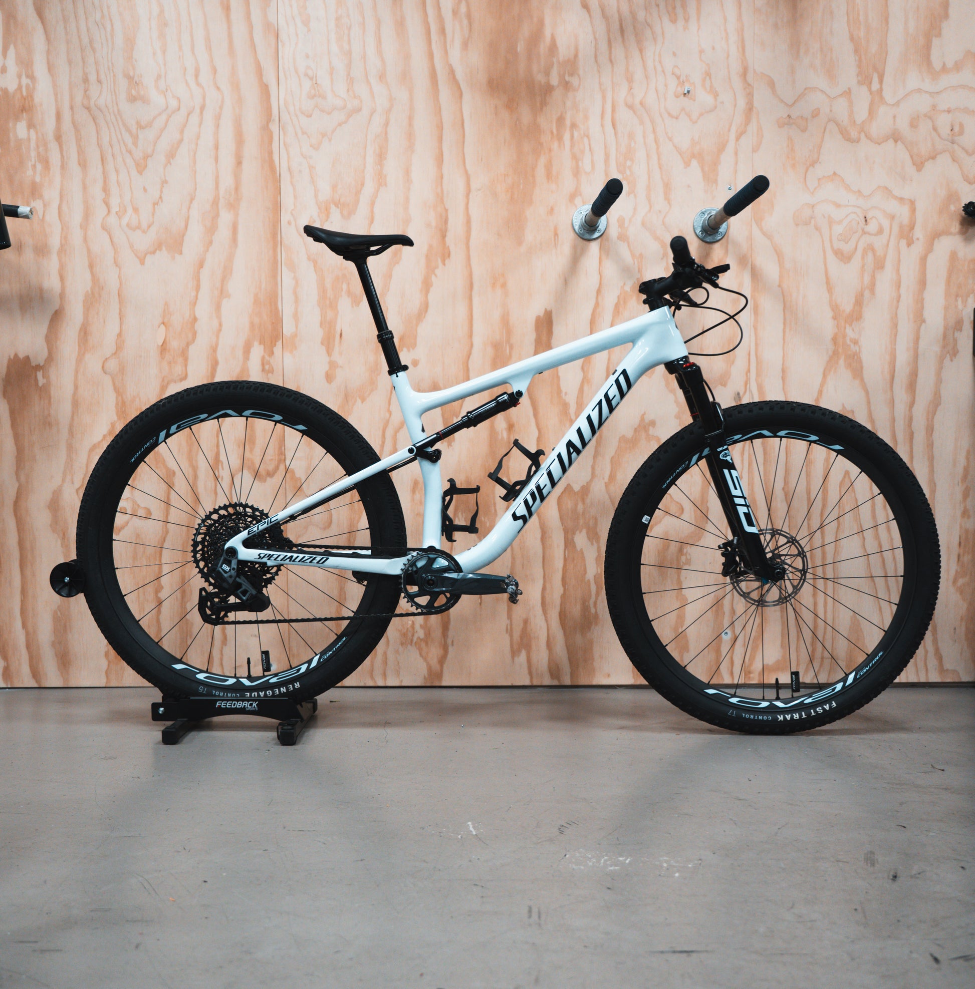 Te koop: Specialized Epic, afgemonteerd met een SRAM GX AXS groepset. De fiets is uitgerust met Roval Control carbon wielen, een S-Works carbon stuur en een dropper post, waardoor hij volledig klaar is voor technische parcoursen en snelle wedstrijden.